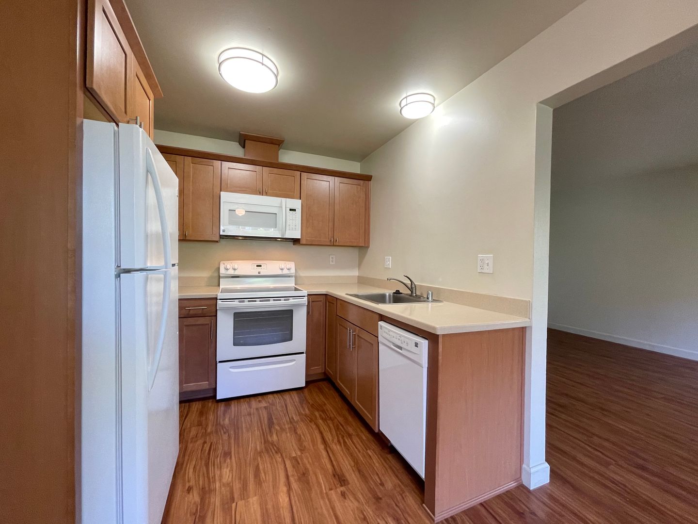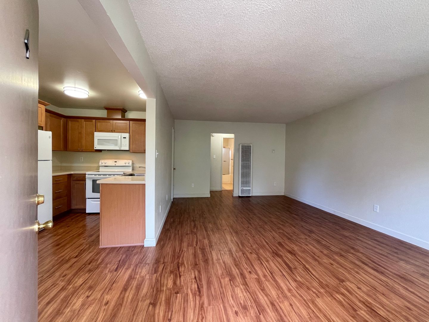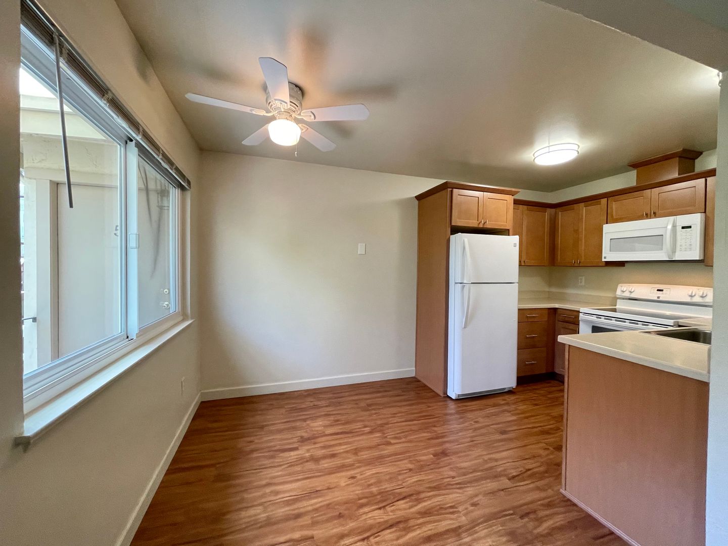 In the heart of downtown Napa, this two bedroom upstairs apartment features hard surface flooring throughout, kitchen appliances include, refrigerator, electric glass top stove, microwave hood, and a built in dishwasher, (all warranted). This kitchen also boasts of a stainless steel sink and modern counter tops and cabinets.  Coin operated laundry, assigned carport parking (one space) and separate onsite storage closet.