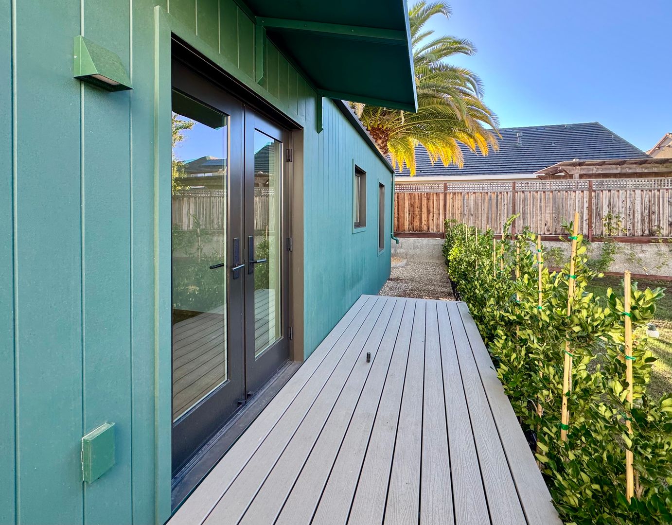 The home shares a large site with the main home which is occupied by the property owners. A deck and small area behind the ADU are dedicated for the tenants of this space. The yard is dedicated to the main home. The property owners have a dog and without fencing between the ADU and owner's yard, the ADU is a no pets home.