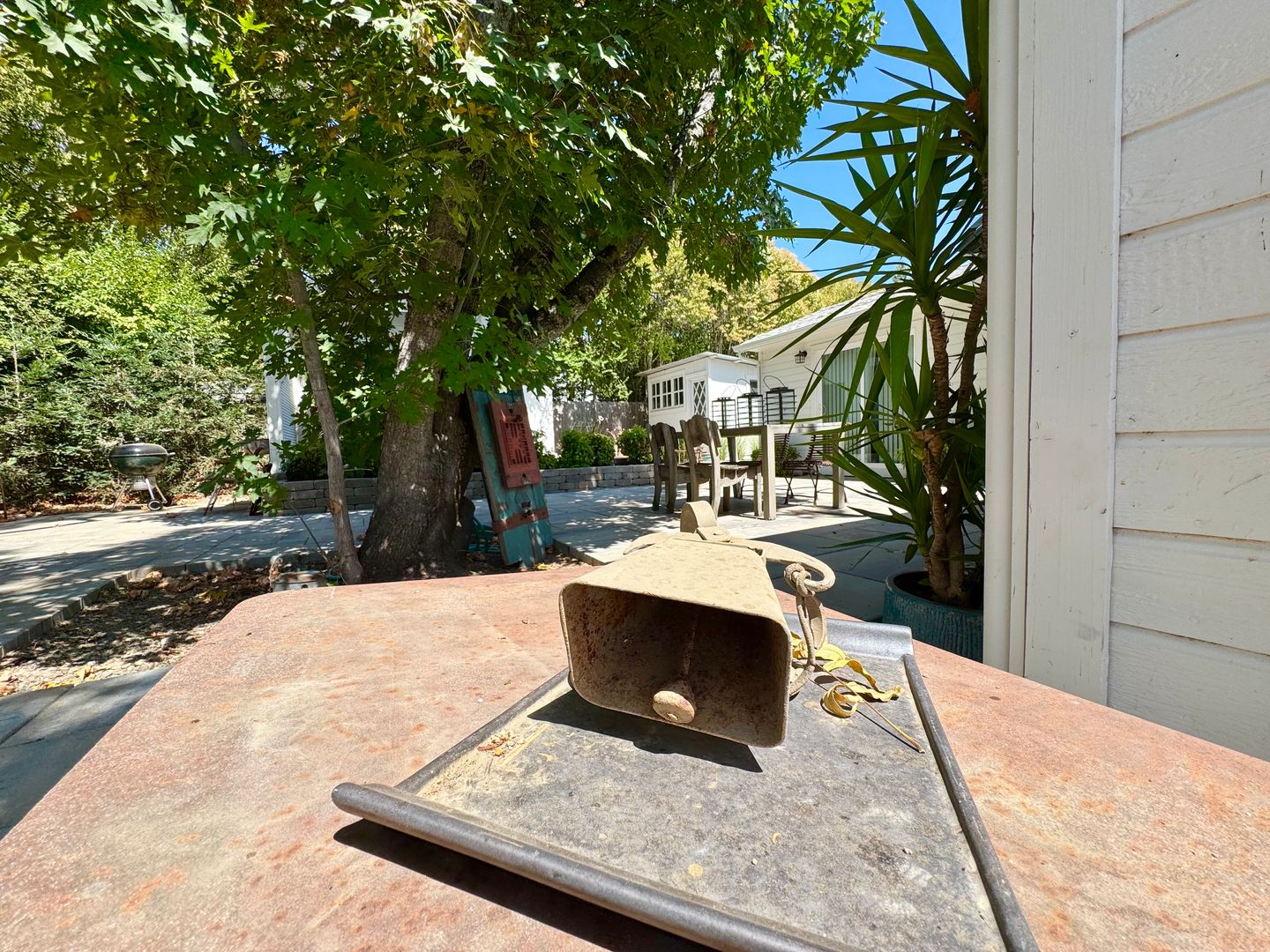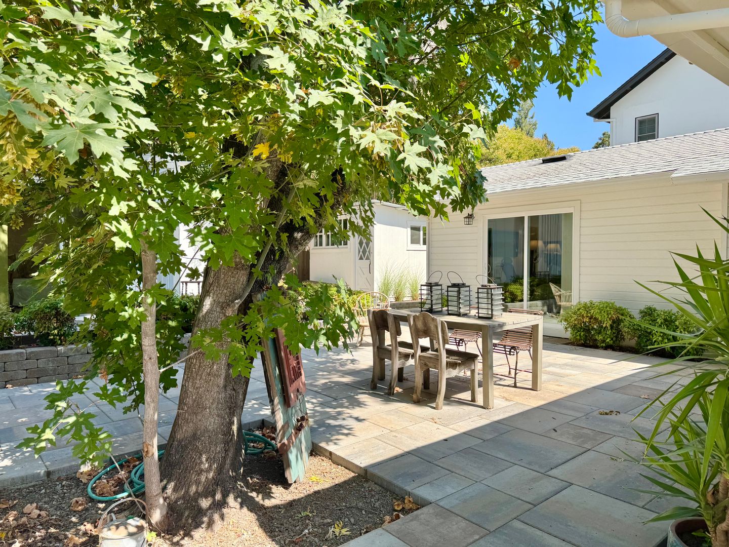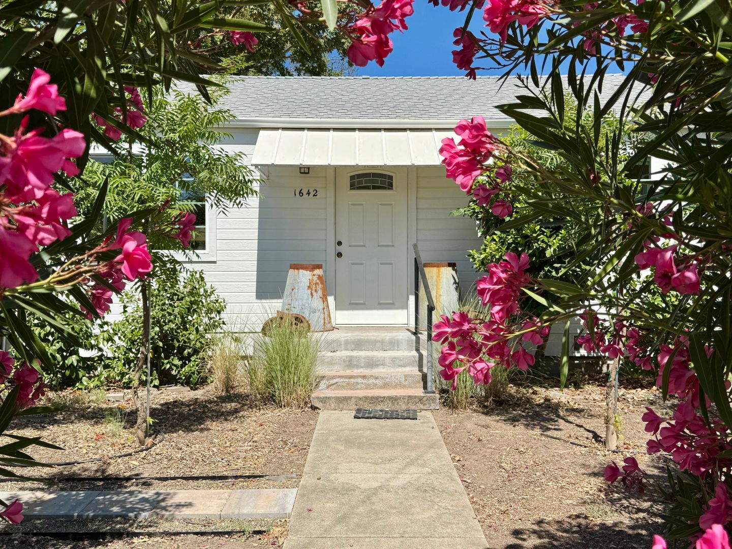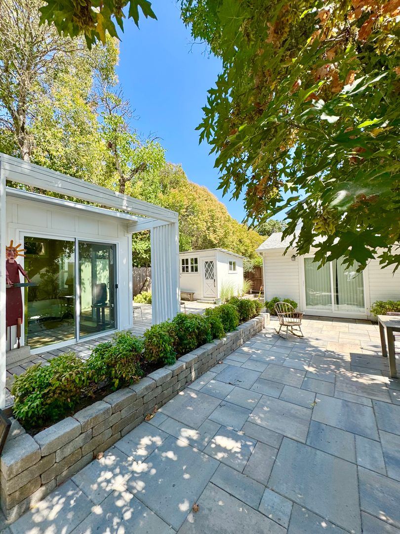 Conveniently located less than half a mile from the vibrant downtown area, the single-story layout features hard surface flooring in the kitchen and bathrooms and wall-to-wall carpeting in the living room, bedrooms, and hallway, creating a warm and inviting atmosphere. The property also includes a detached art studio/office with deck, perfect for those seeking a creative or professional workspace at home. The fenced yard and patio offer a private outdoor space, complete with your own private redwood grove and a detached work room equipped with an animal shower! Landscape maintenance is included four times a year. The home also features an indoor laundry closet with a stacked washer and dryer for your convenience. Central heating and cooling for comfort throughout the year. Access the driveway through the rolling portion of the white picket fence at front for parking. Experience the charm and convenience of living in Saint Helena with this unique offering!