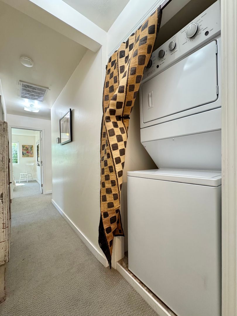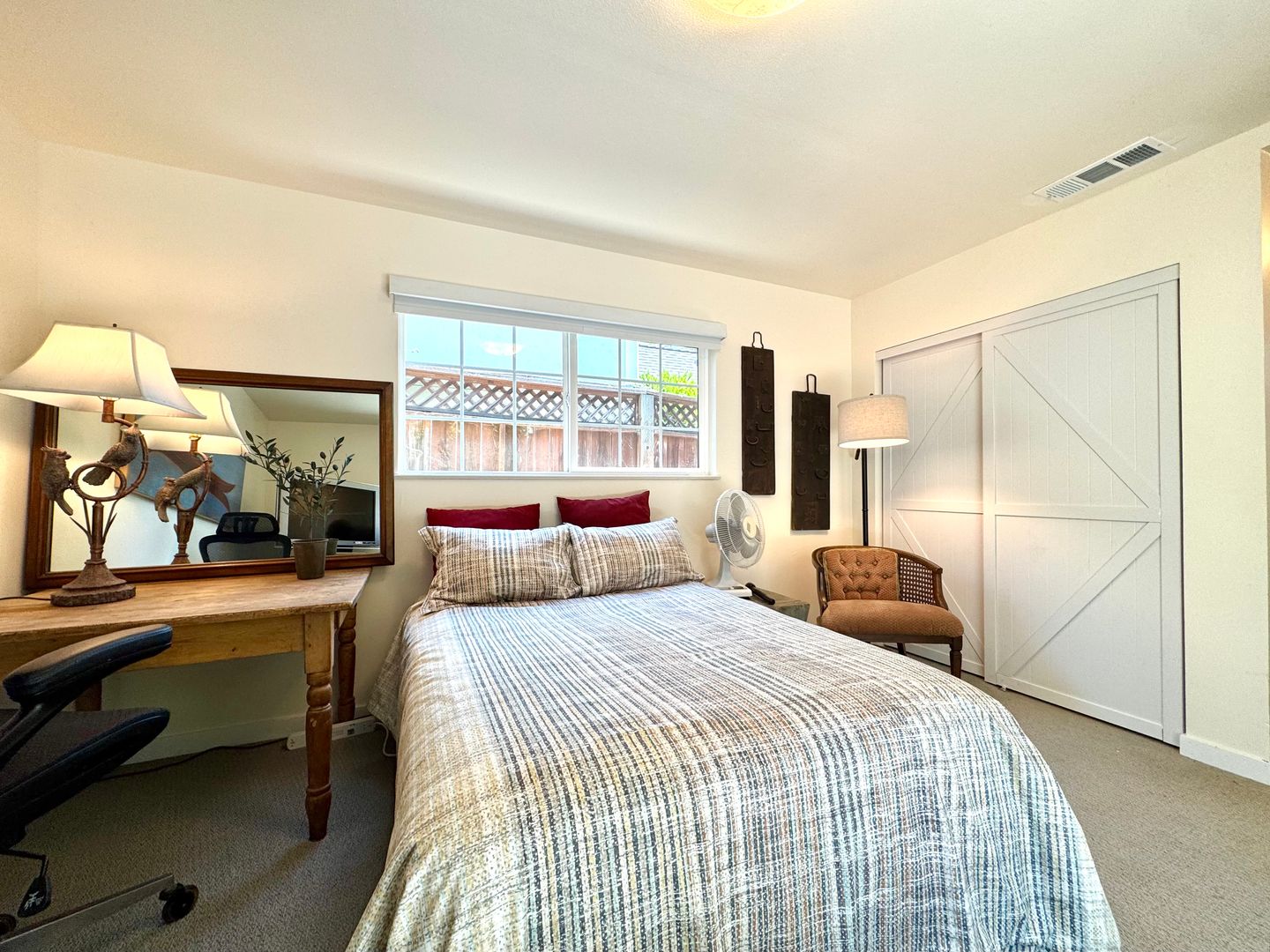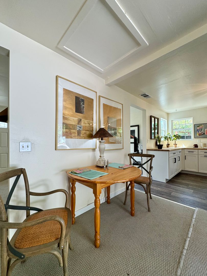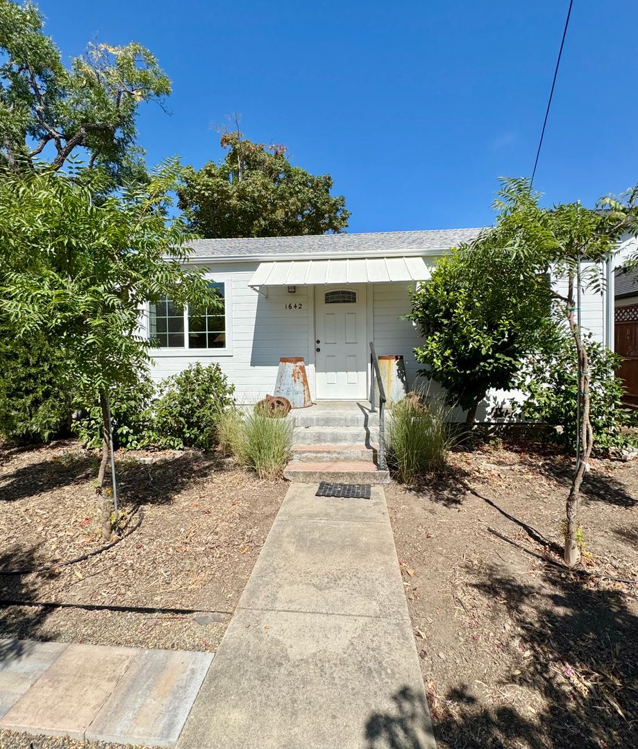 Conveniently located less than half a mile from the vibrant downtown area, the single-story layout features hard surface flooring in the kitchen and bathrooms and wall-to-wall carpeting in the living room, bedrooms, and hallway, creating a warm and inviting atmosphere. The property also includes a detached art studio/office with deck, perfect for those seeking a creative or professional workspace at home. The fenced yard and patio offer a private outdoor space, complete with your own private redwood grove and a detached work room equipped with an animal shower! Landscape maintenance is included four times a year. The home also features an indoor laundry closet with a stacked washer and dryer for your convenience. Central heating and cooling for comfort throughout the year. Access the driveway through the rolling portion of the white picket fence at front for parking. Experience the charm and convenience of living in Saint Helena with this unique offering!