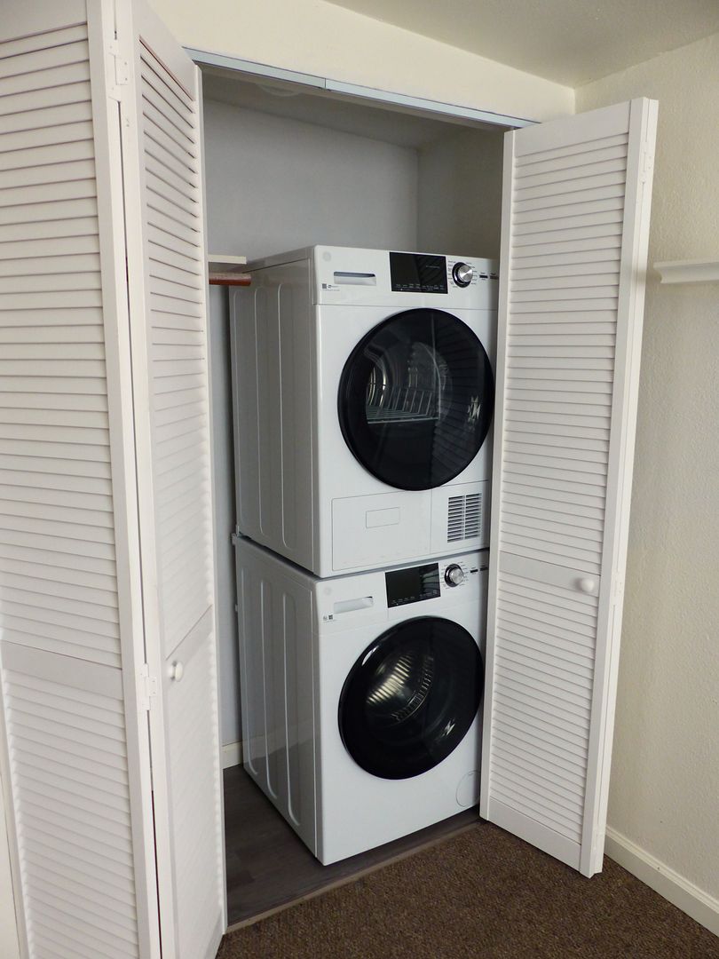 This one bedroom unit is complete with a gas stove, microwave hood, refrigerator and stacked washer/dryer, split system heating/cooling, skylight tube and more!